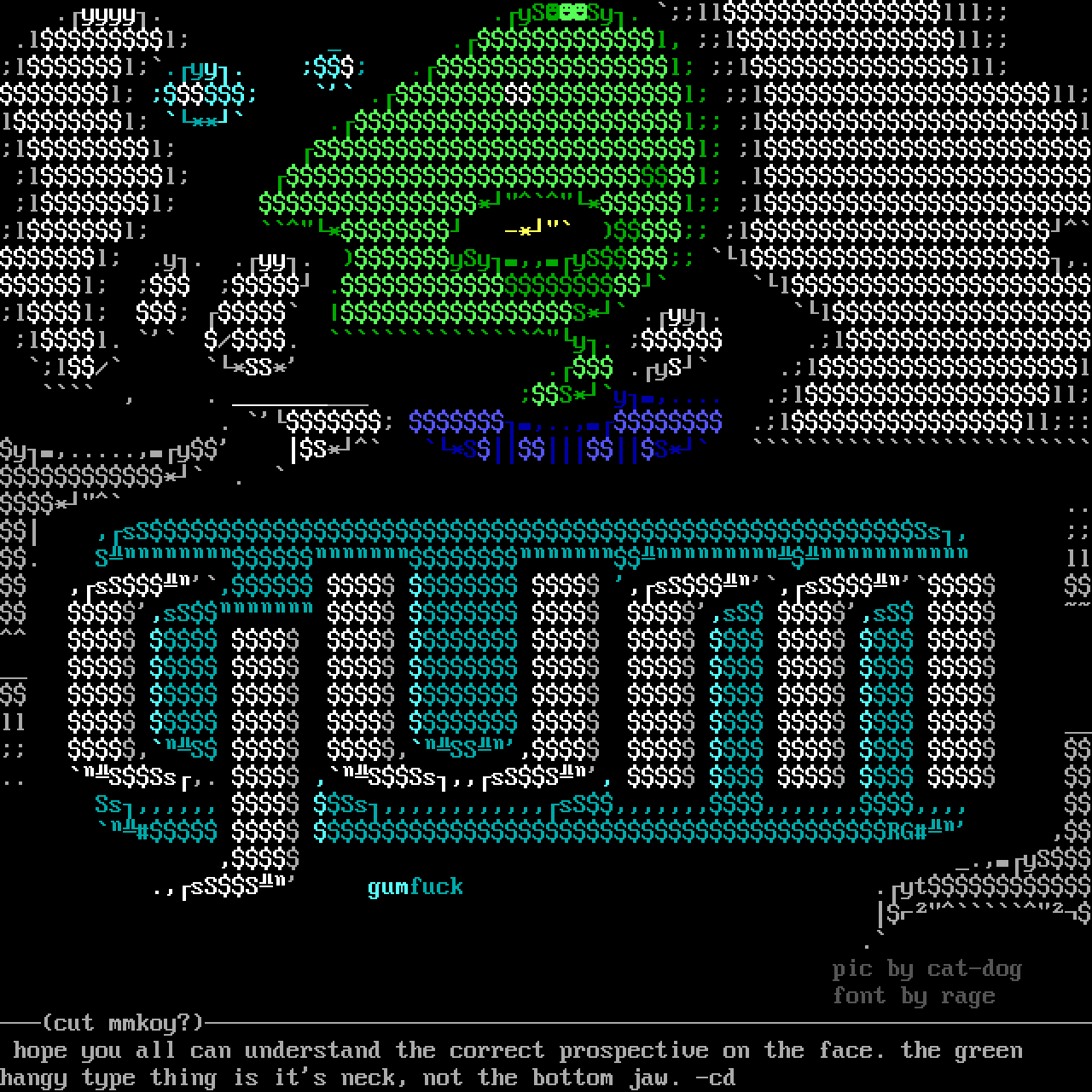 ll ,S ,SS, .. SSs,. ,SSs,,sSS, Ss,,,,,, Ss,,,,,,,,,,,,sS,,,,,,,,,,,,,,,,,, RG , , .,yS .,sSS gumfuck .yt . pic by cat-dog