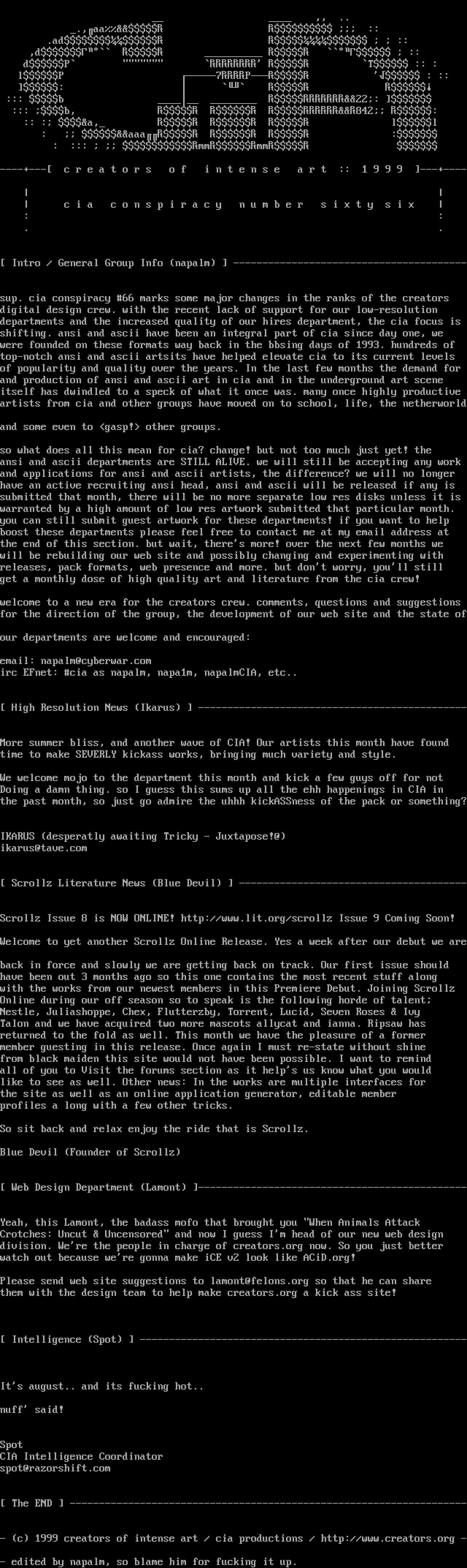 top-notch ansi and ascii artsits have helped elevate cia to its current levels