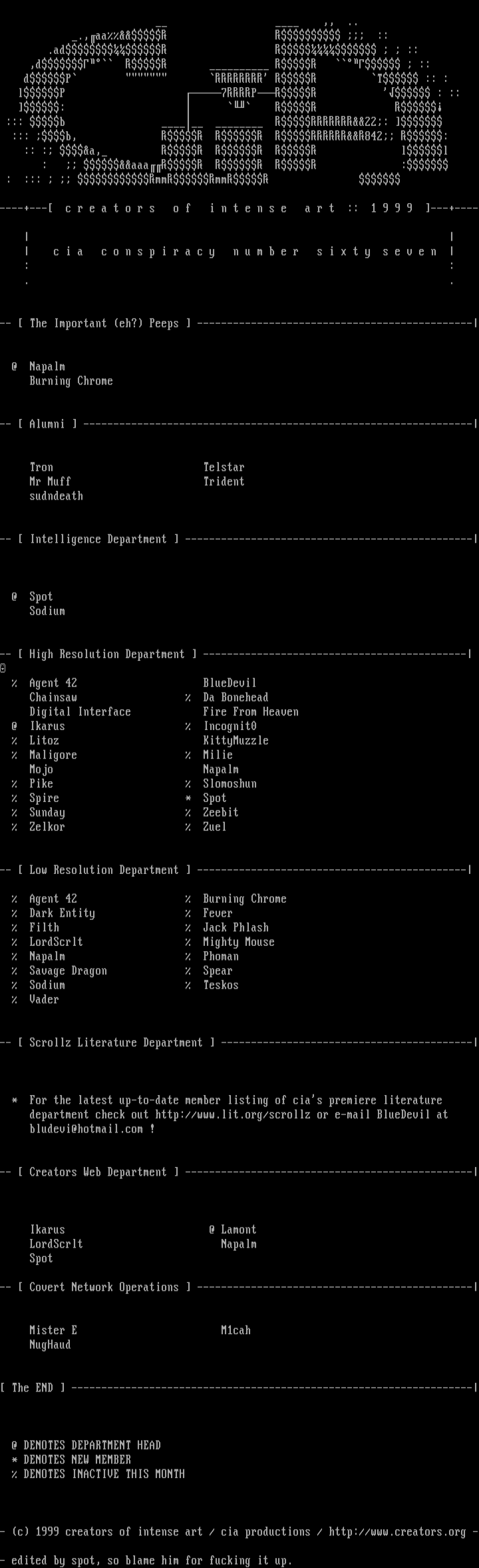 ----+--- c r e a t o r s o f i n t e n s e a r t :: 1 9 9 9 ---+----