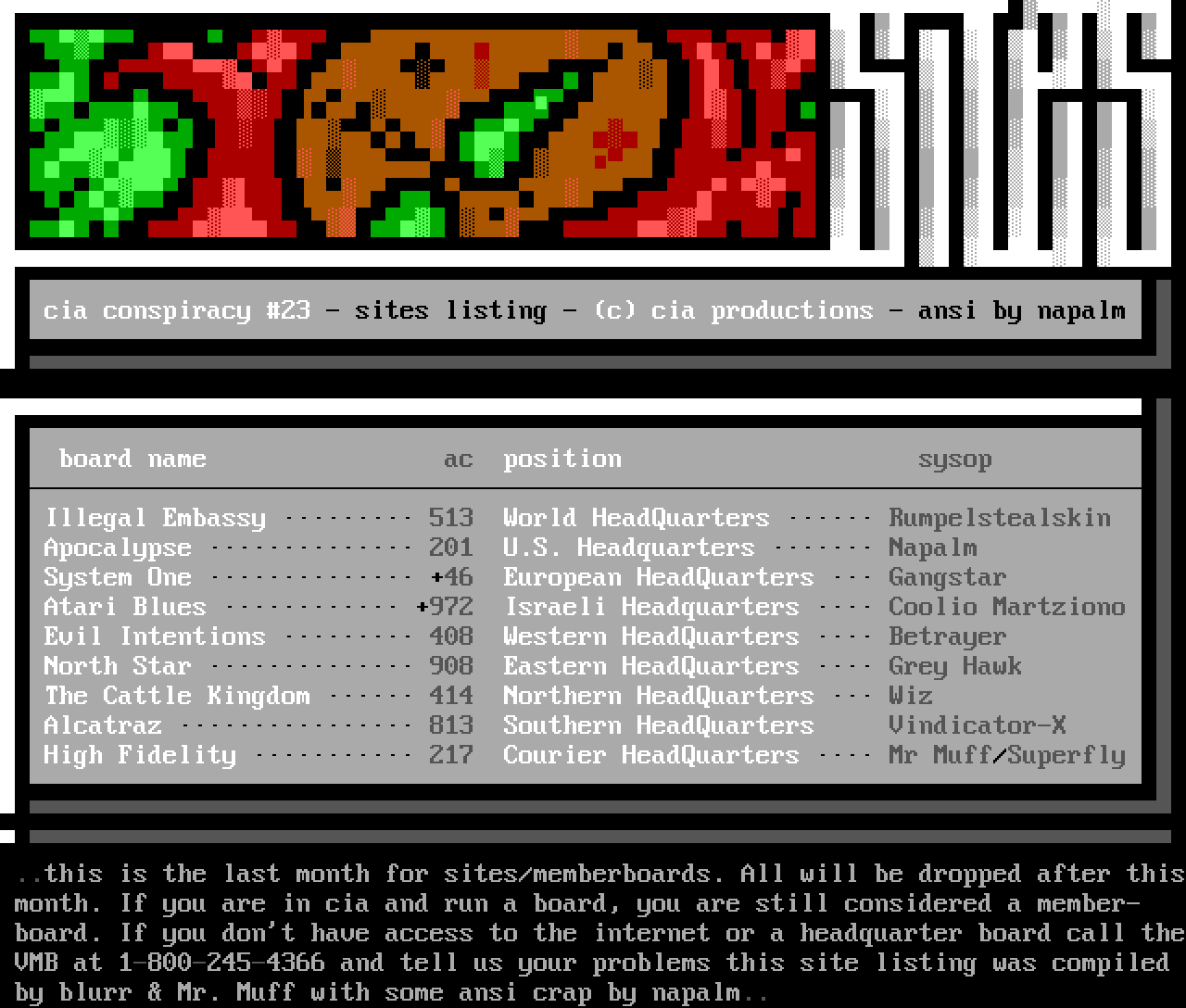 cia conspiracy 23 - sites listing - c cia productions - ansi by napalm