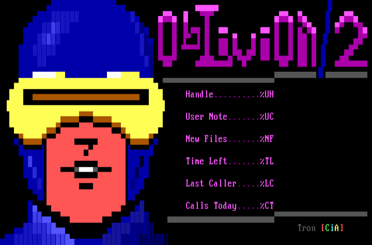 Handle.......... UserNote....... NewFiles....... TimeLeft....... LastCaller..... CallsToday..... TronCiAUHUCNFTLLCCT