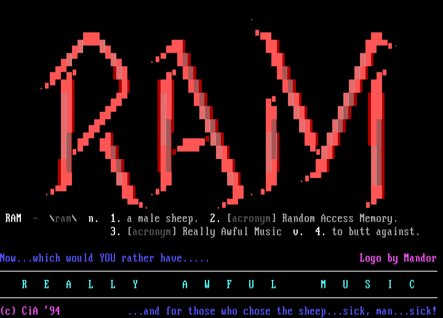 acronym Really Awful Music v. 4. to butt