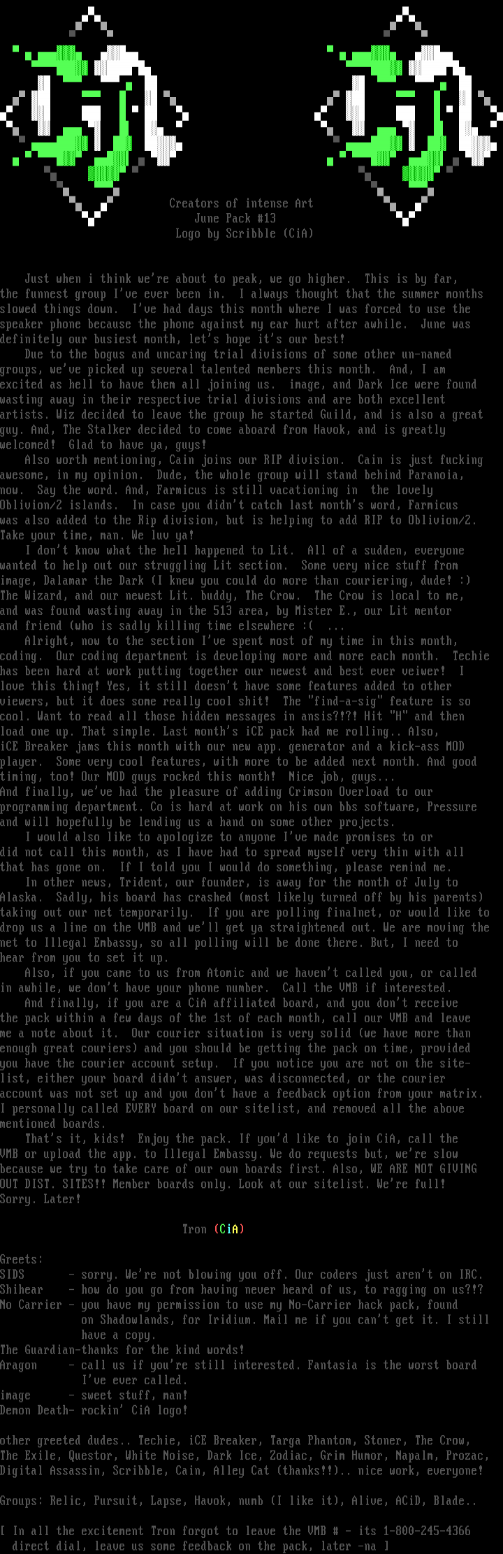 other greeted dudes.. Techie, iCE Breaker, Targa Phantom, Stoner, The Crow,
