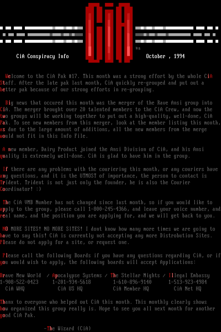 CiA Conspiracy Info October , 1994