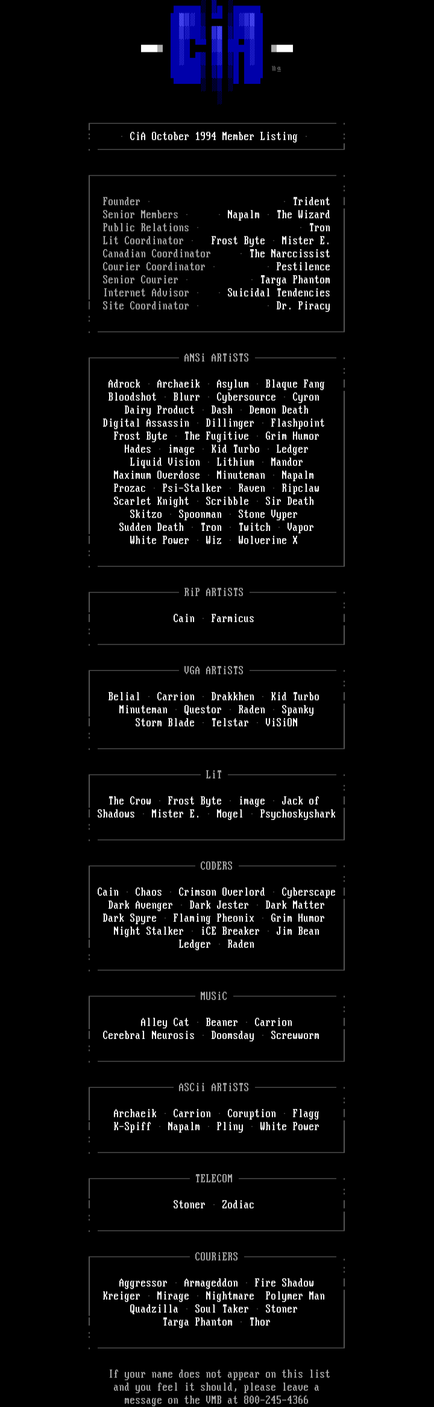 : CiA October 1994 Member Listing