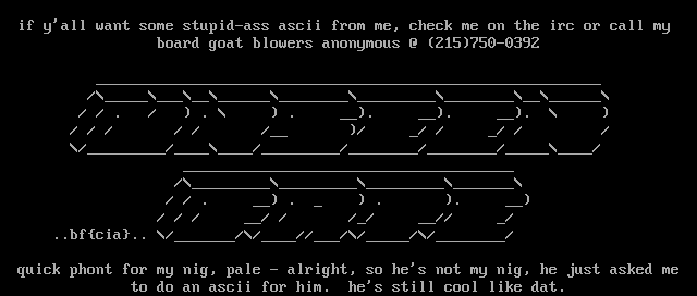if yall want some stupid-ass ascii from me, check me on the irc or call my