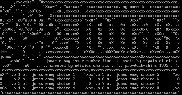 .,oo00 . jonas e-mag issue number five .. ascii by napalm of cia .