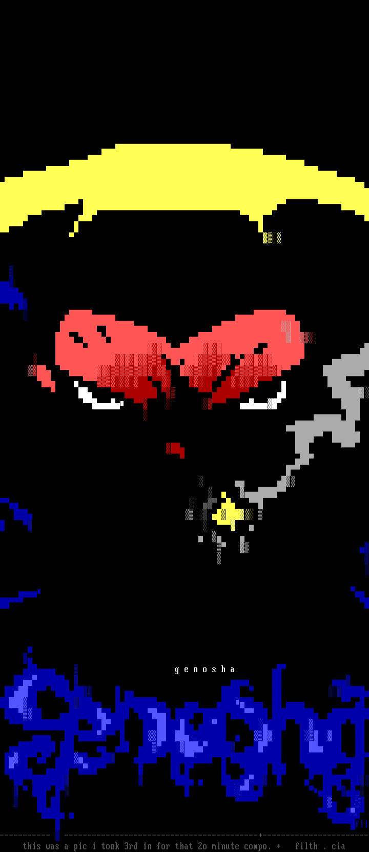 fil----------- ------------------------------------------+----------------------- this was a pic i took 3rd in for that 2o minute compo. + filth . cia