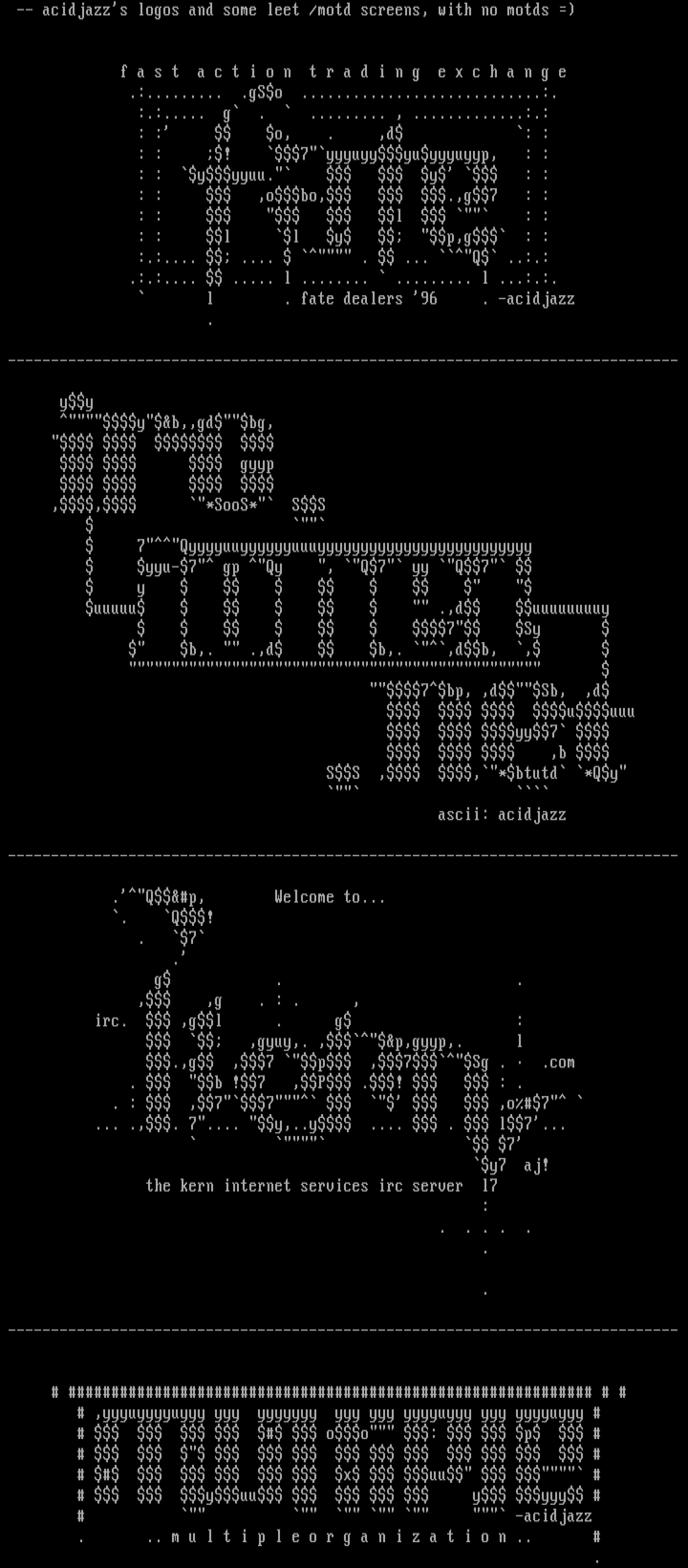 -- acidjazzs logos and some leet /motd screens, with no motds