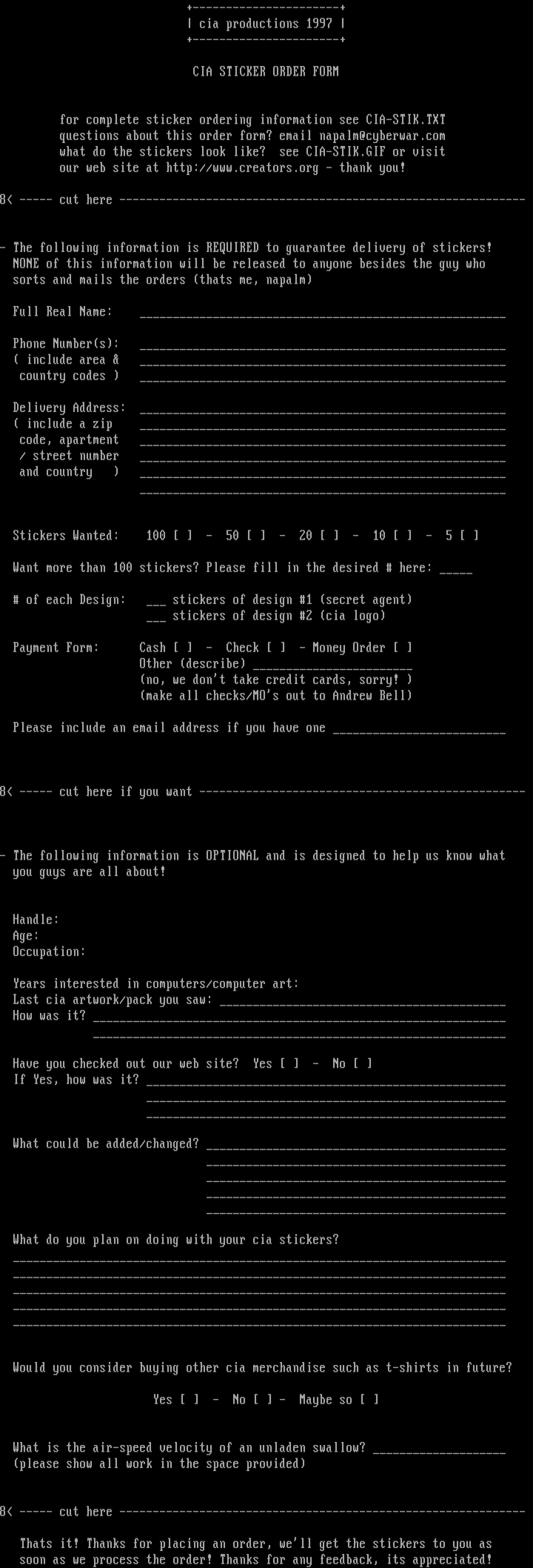 what do the stickers look like? see CIA-STIK.GIF or visit