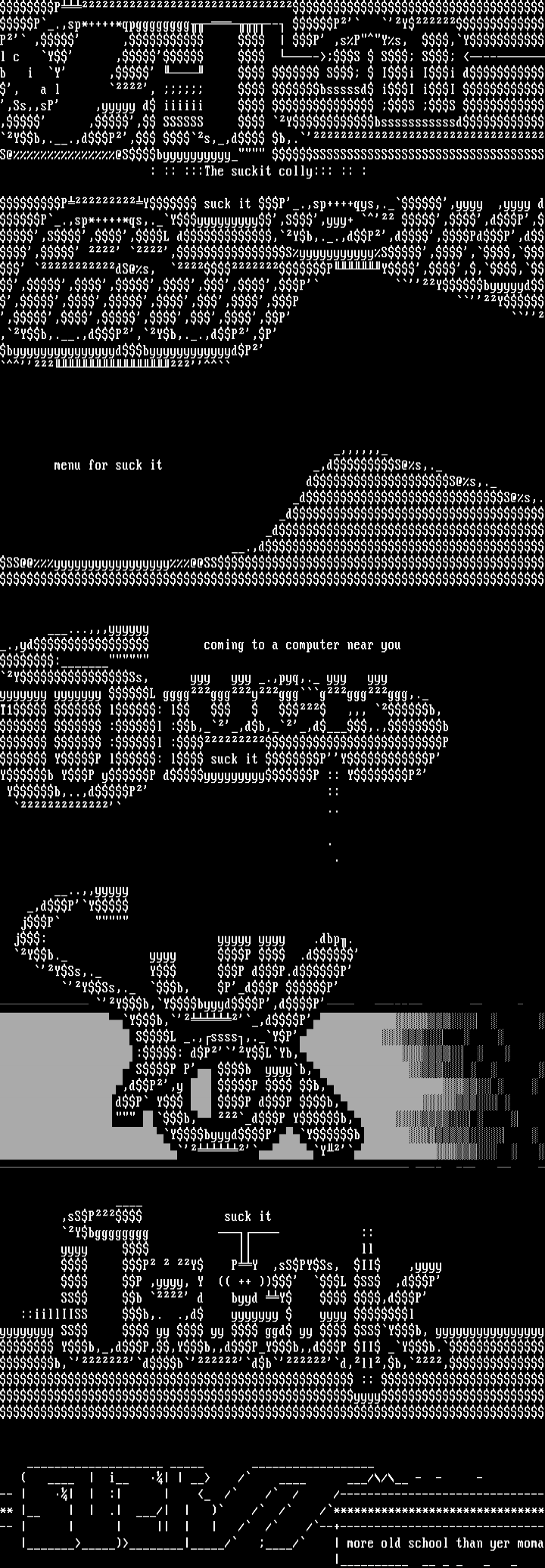PP.,sp*++++*qpgggggggg-- P YP , , P ,sPYs, ,Yl c Y , --S S S ---b i Y , S Ii Ii d, a l , bsssssd iI iI ,Ss,,sP ,yyyyy d iiiiii S S , ,, SSSSSS YbsssssssssssdYb,..,dP, s,,d b,.S@@Sbyyyyyyyyyy SSSSSSSSSSSSSSSSSSSSSSSSSSSSSSSSSS : :: :::The suckit colly::: :: :