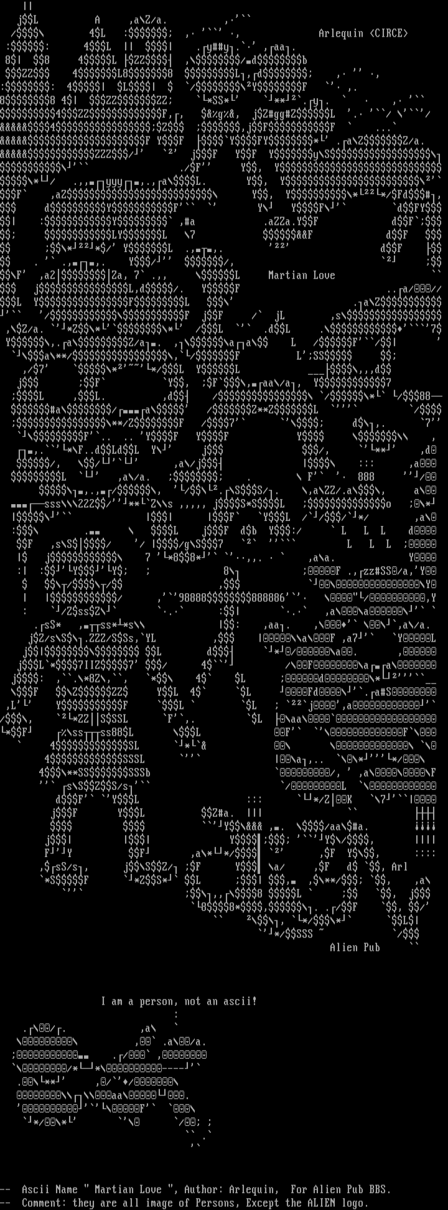 -- Ascii Name Martian Love , Author: Arlequin, For Alien Pub BBS.