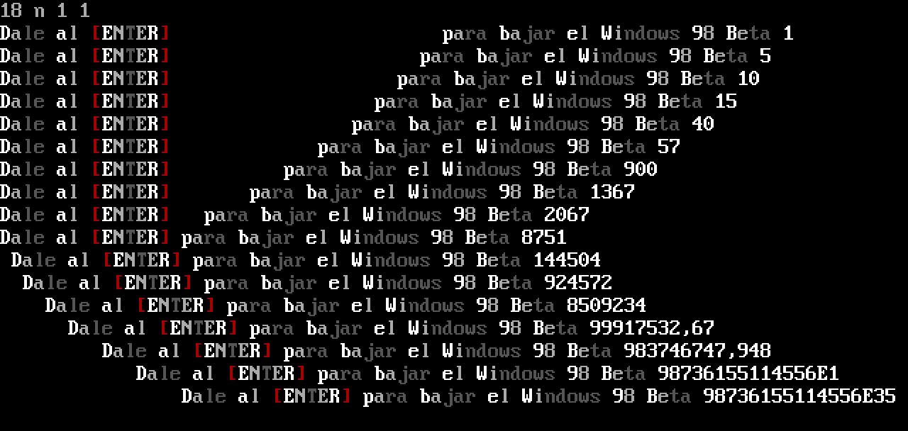 Dale al ENTER para bajar el Windows 98 Beta 983746747,948