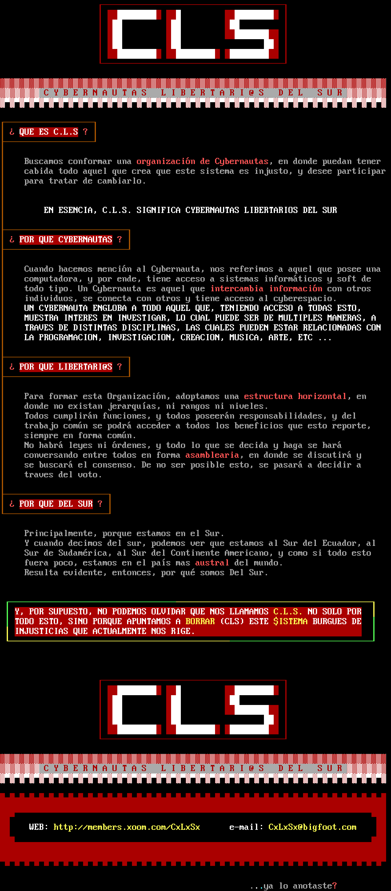 EN ESENCIA, C.L.S. SIGNIFICA CYBERNAUTAS LIBERTARIOS DEL SUR