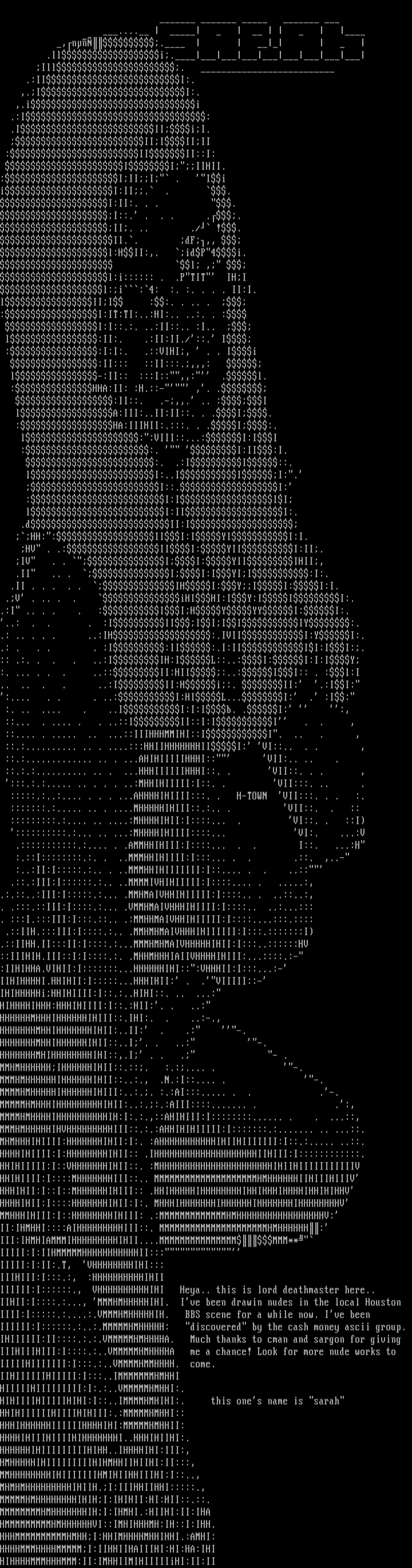 IIIIII:I::::::.:..:.MMMMMHMHHHHH: discovered by the cash money ascii group.