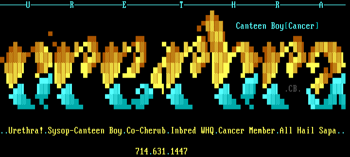 ..Urethra!.Sysop-Canteen Boy.Co-Cherub.Inbred WHQ.Cancer Member.All Hail Sapa..