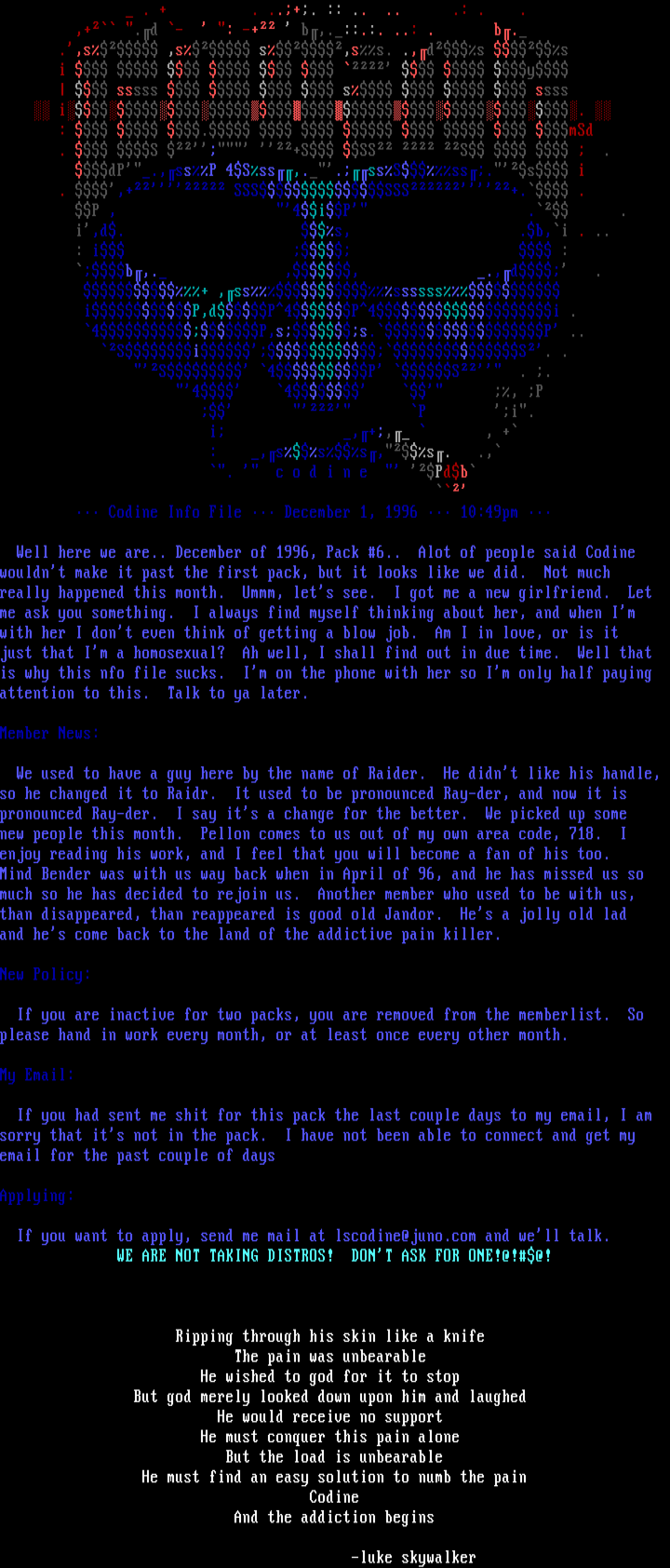 Well here we are.. December of 1996, Pack 6.. Alot of people said Codine