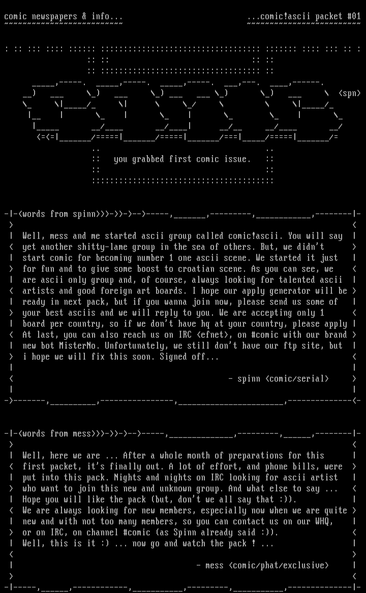Well, mess and me started ascii group called comic!ascii. You will say