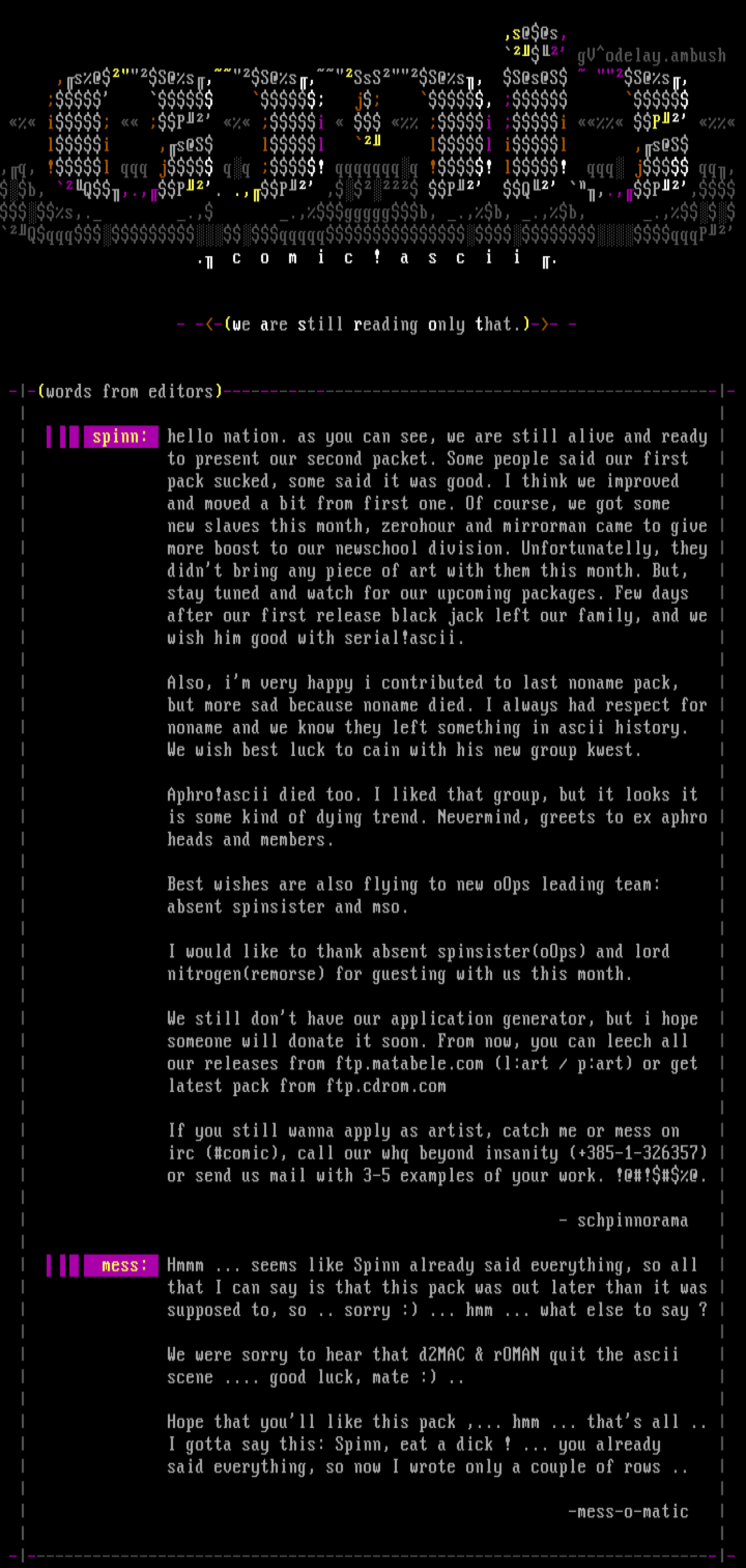 We were sorry to hear that d2MAC rOMAN quit the ascii