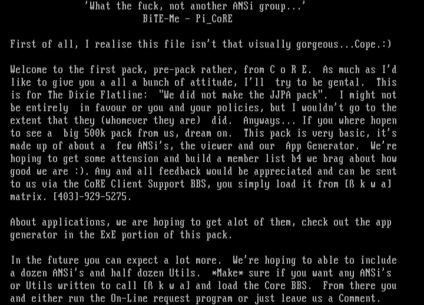 to us via the CoRE Client Support BBS, you simply load it from k w a