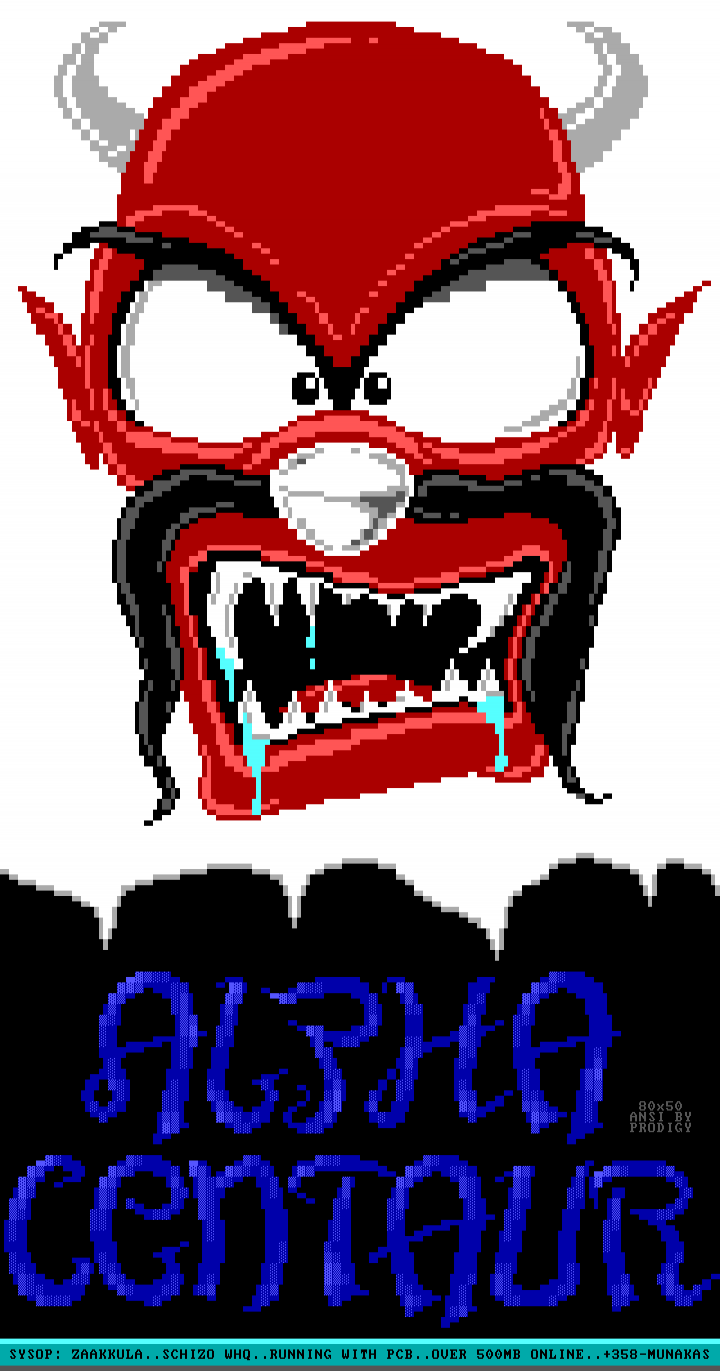 SYSOP: ZAAKKULA..SCHIZO WHQ..RUNNING WITH PCB..OVER 500MB ONLINE..+358-MUNAKAS