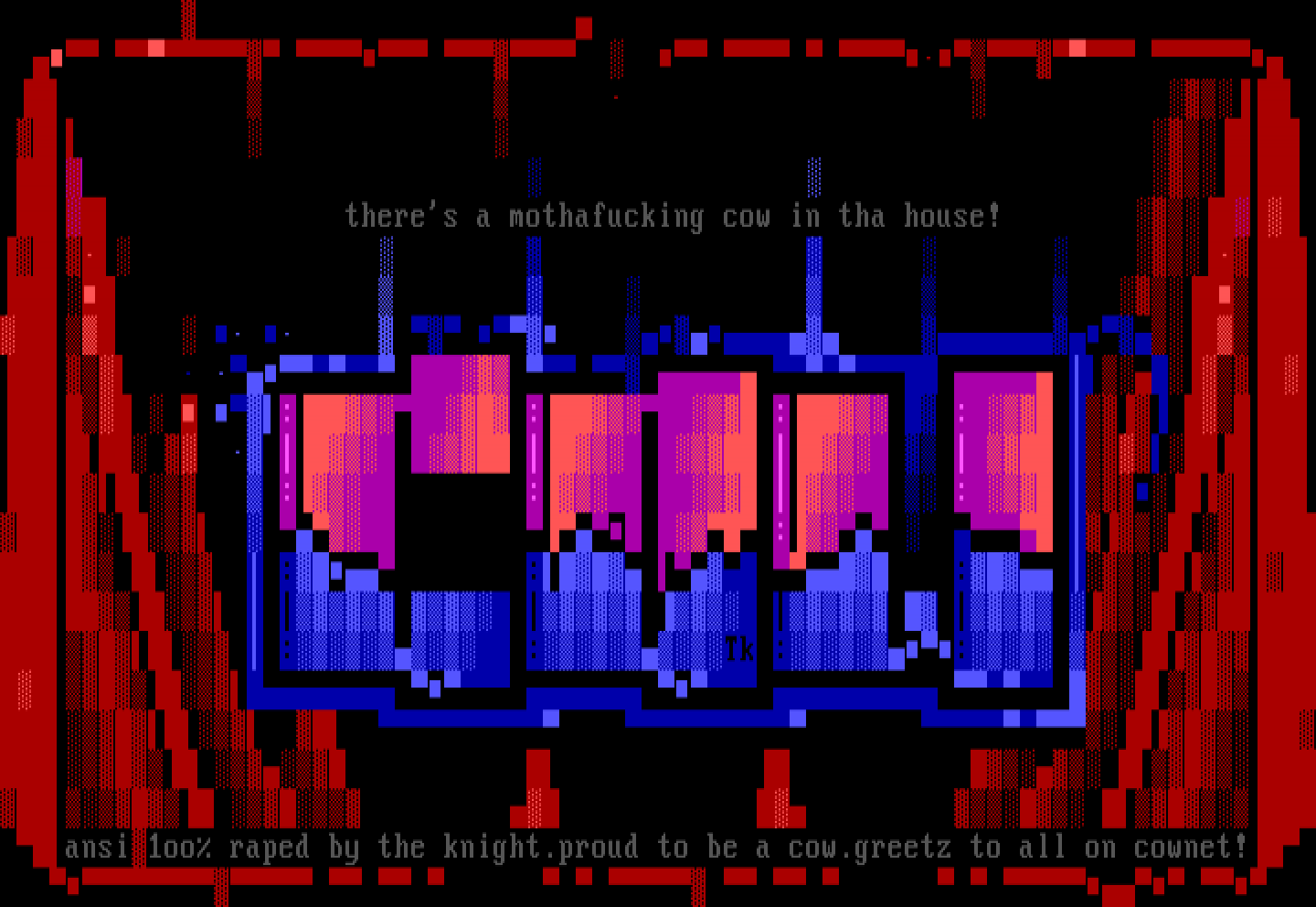 : : : : : : : : : : : : :Tk :: ansi1oo raped by the knight.proud to be a cow.greetz to all on cownet!