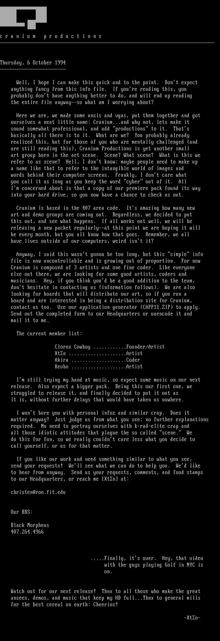 art and demo groups are coming out. Regardless, we decided to put