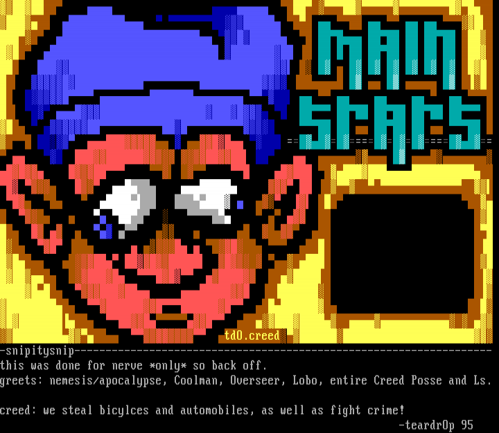 greets: nemesis/apocalypse, Coolman, Overseer, Lobo, entire Creed Posse and Ls.