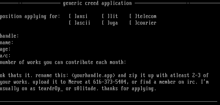your works. upload it to Nerve at 616-373-5404, or find a member on irc. Im