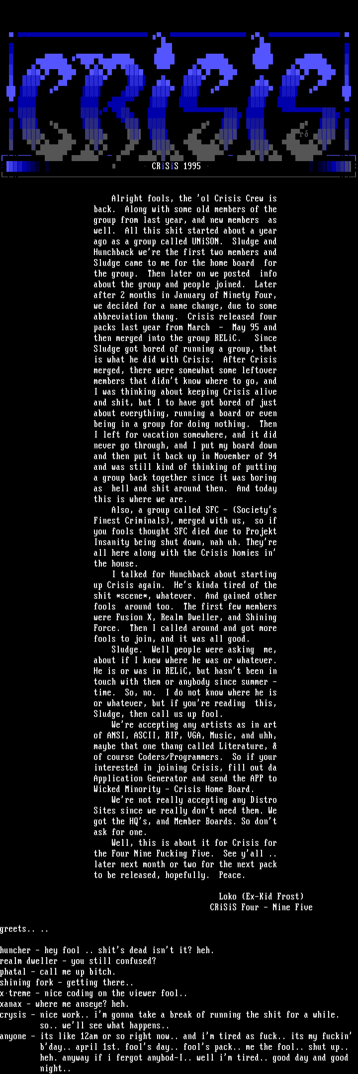 of ANSI, ASCII, RIP, VGA, Music, and uhh,