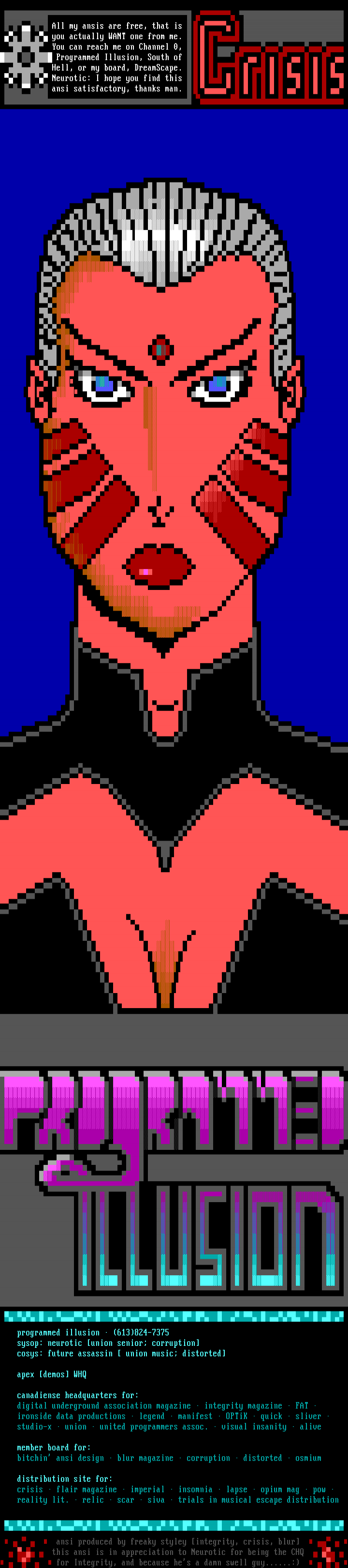 ansi produced by freaky styley integrity, crisis, blur this ansi is in appreciation to Neurotic for being the CHQ