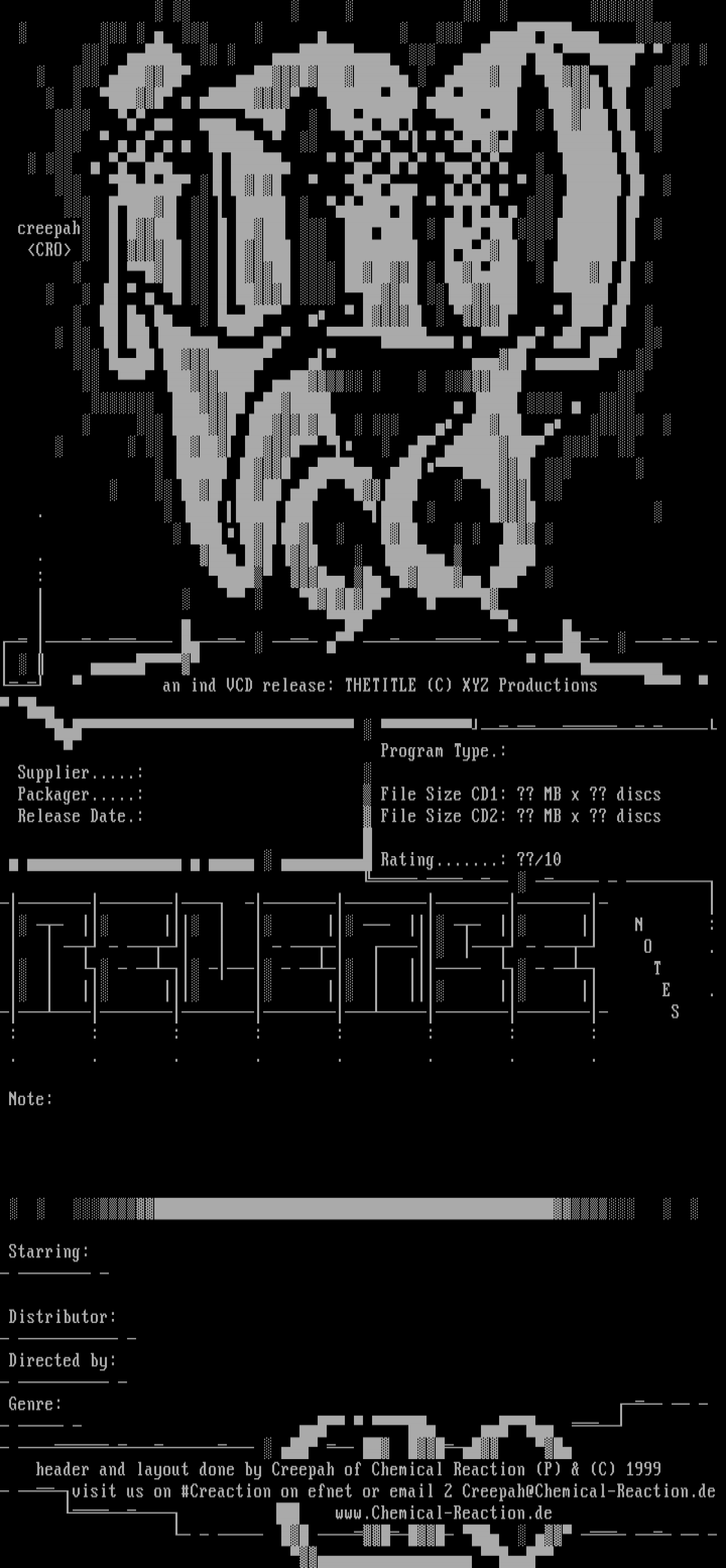 header and layout done by Creepah of Chemical Reaction P C 1999