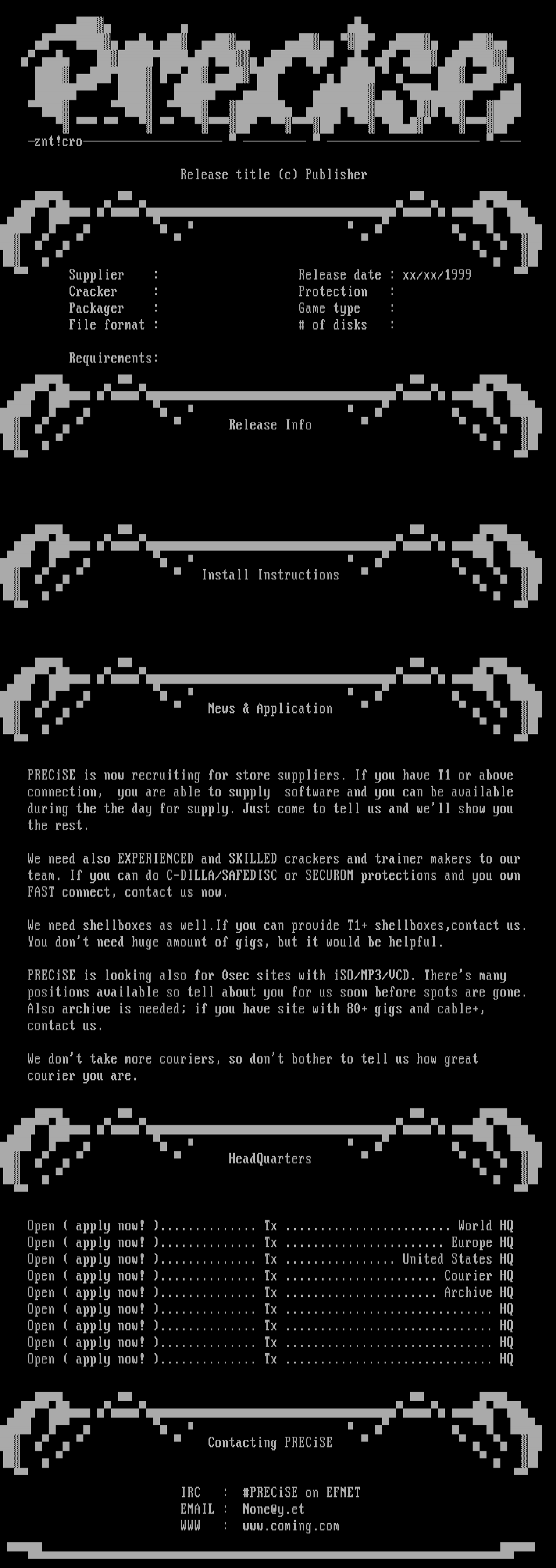 PRECiSE is looking also for 0sec sites with iSO/MP3/VCD. Theres many