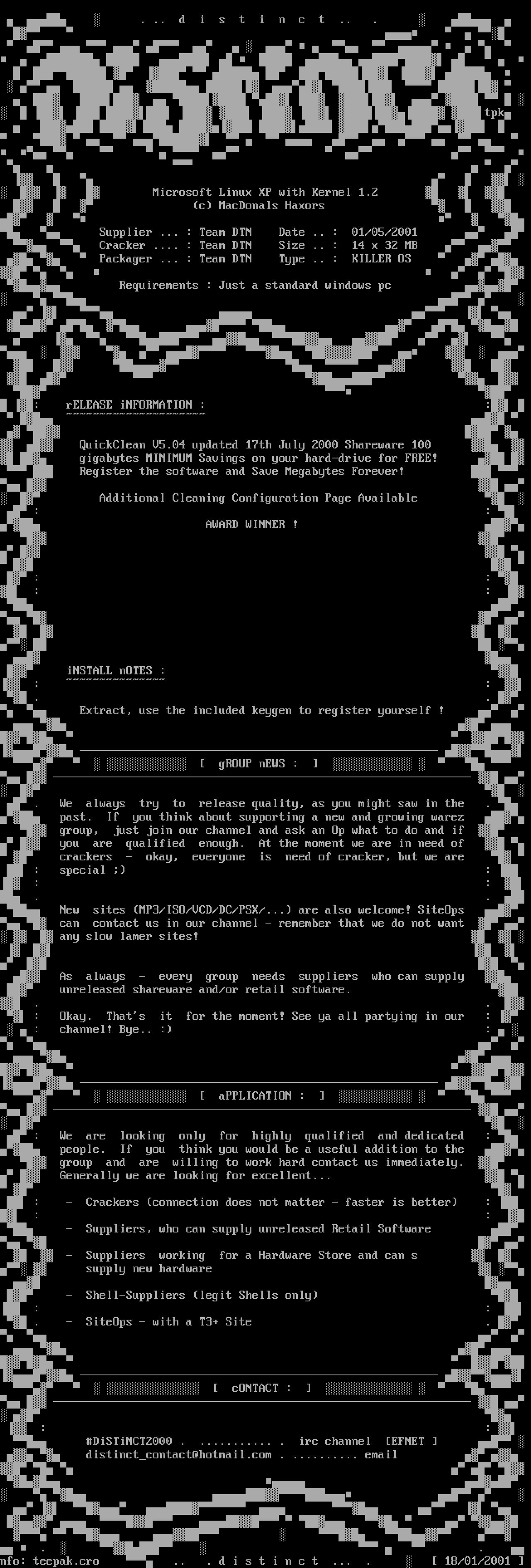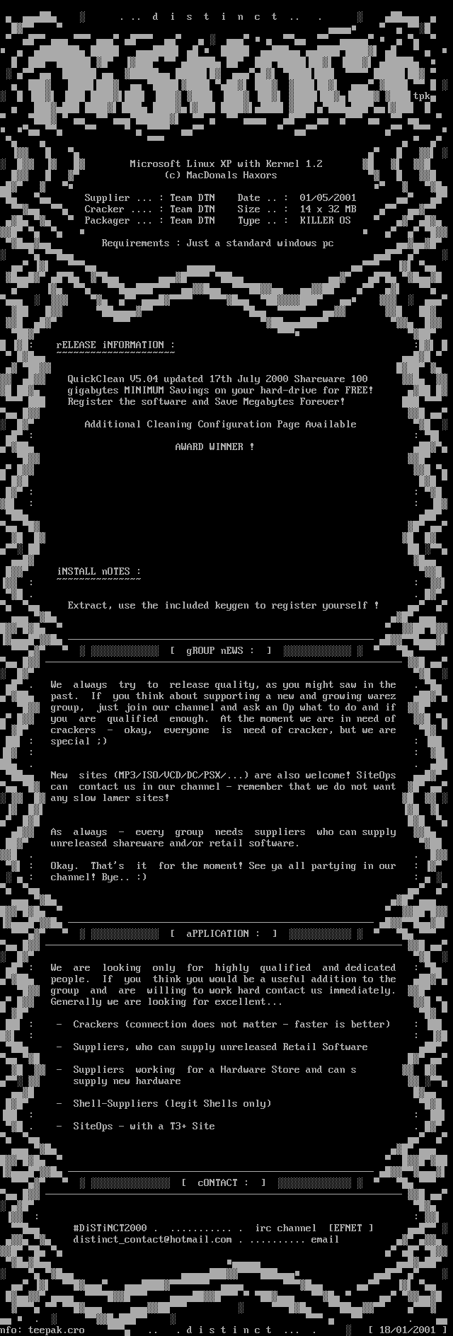 nfo: teepak.cro .. . d i s t i n c t ... . 18/01/2001
