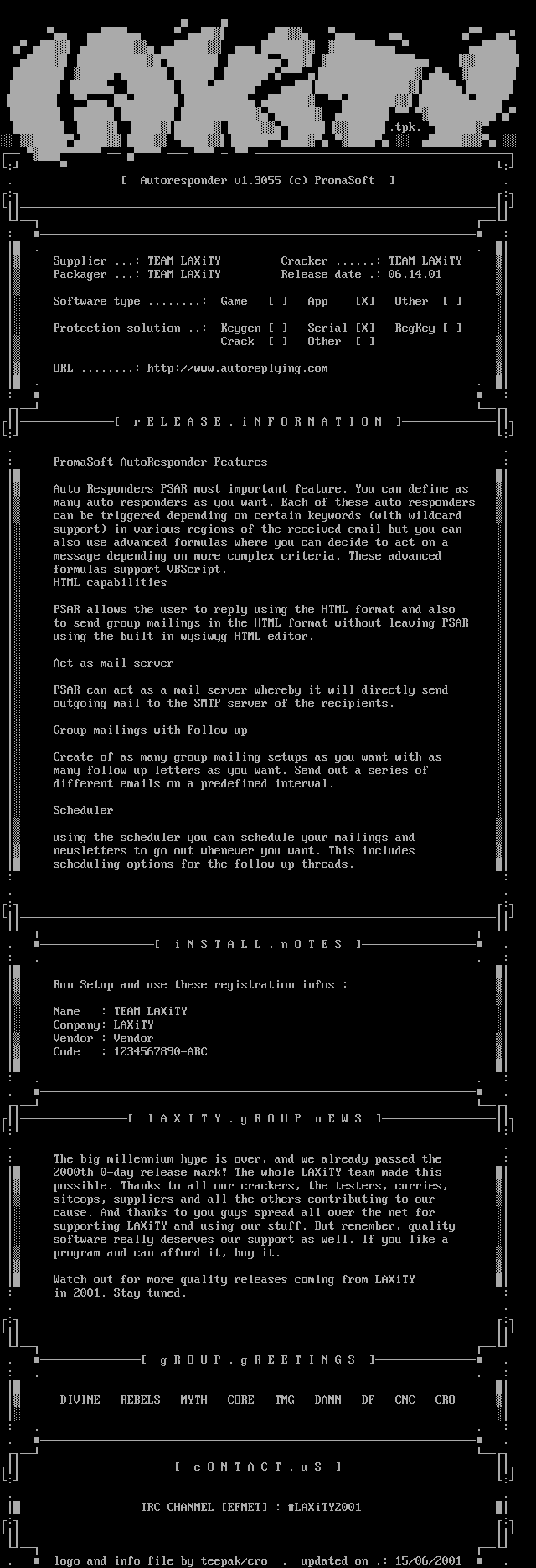 Packager ...: TEAM LAXiTY Release date .: 06.14.01