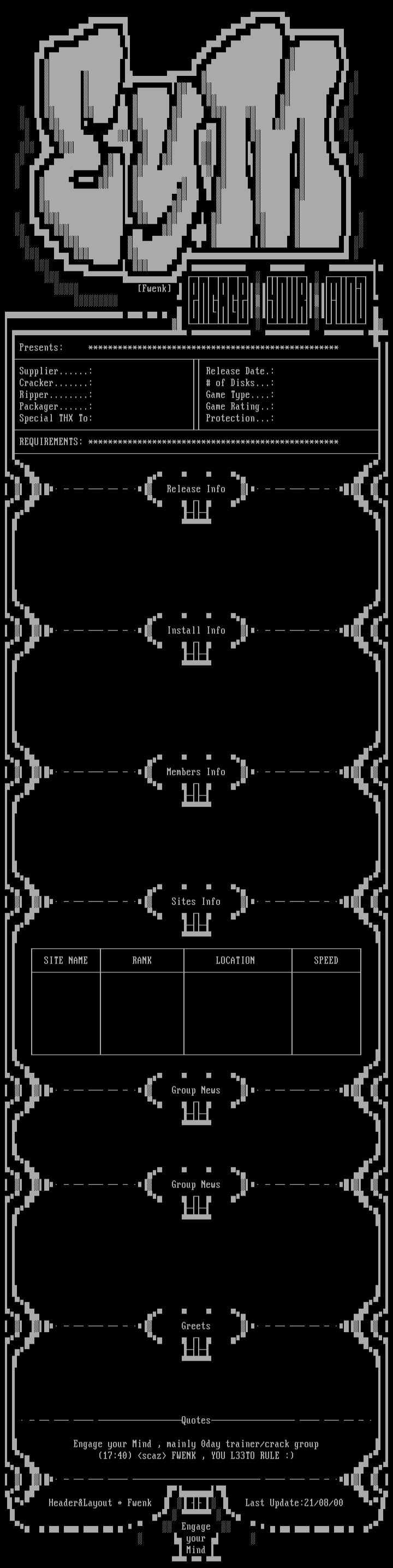 Engage your Mind , mainly 0day trainer/crack group