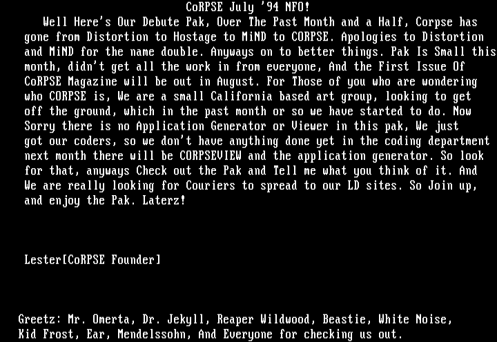 Greetz: Mr. Omerta, Dr. Jekyll, Reaper Wildwood, Beastie, White Noise,