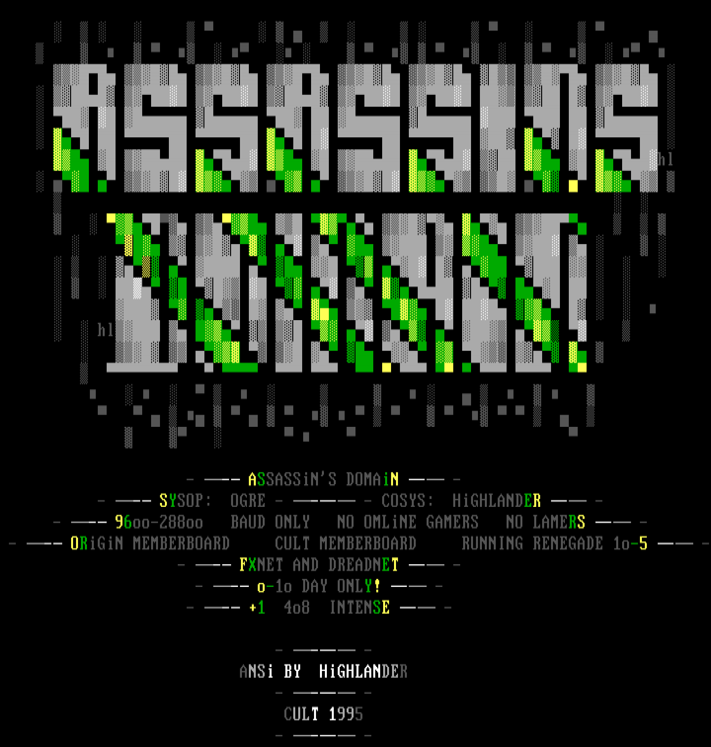 - - SYSOP: OGRE - -- - COSYS: HiGHLANDER - -