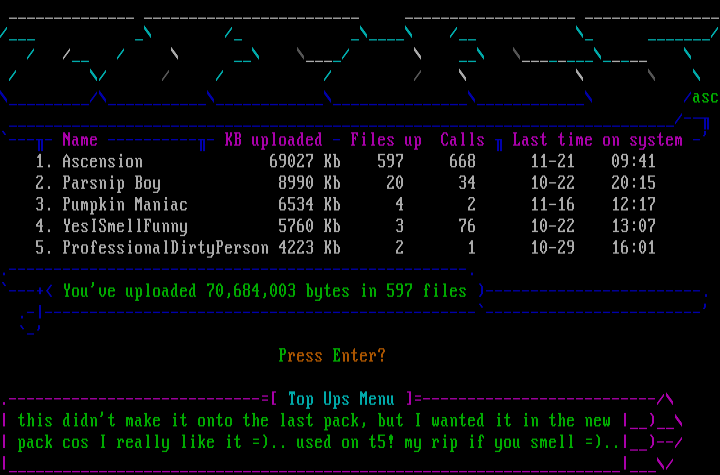 ---- Name ----------- KB uploaded - Files up Calls Last time on system -