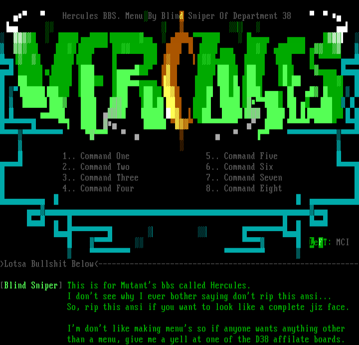 Hercules BBS. MenuBy Blind Sniper Of Department 38