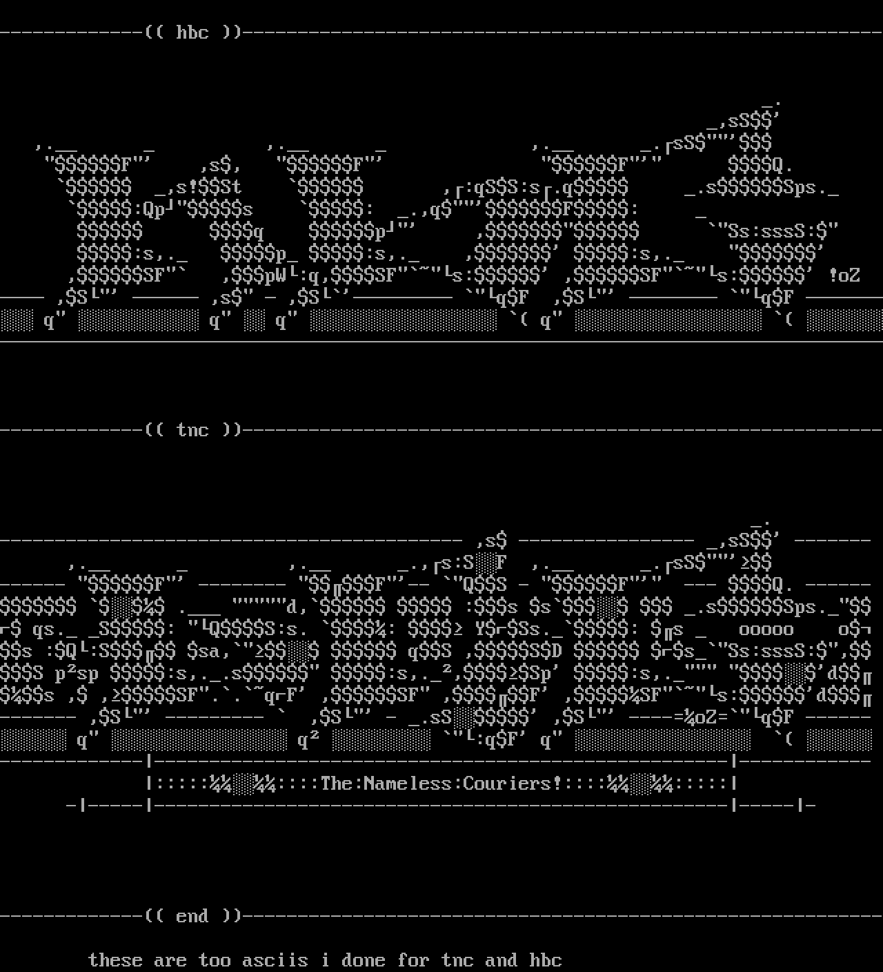 these are too asciis i done for tnc and hbc