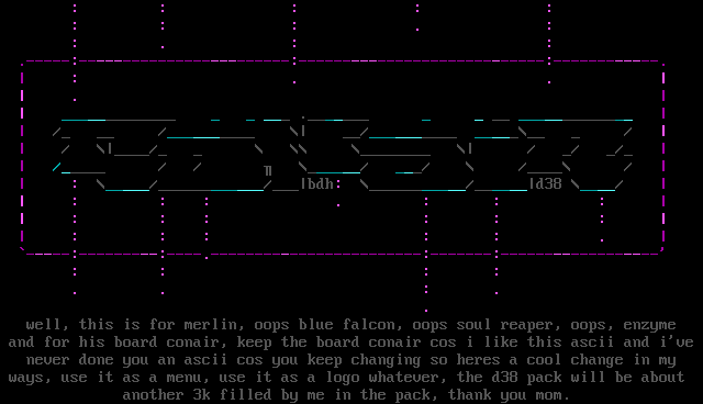 and for his board conair, keep the board conair cos i like this ascii and ive