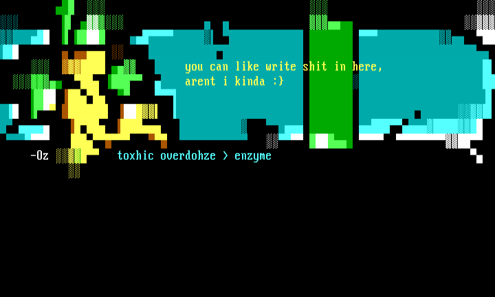 you can like write shit in here, arent i kinda : -Oz toxhic overdohze enzyme