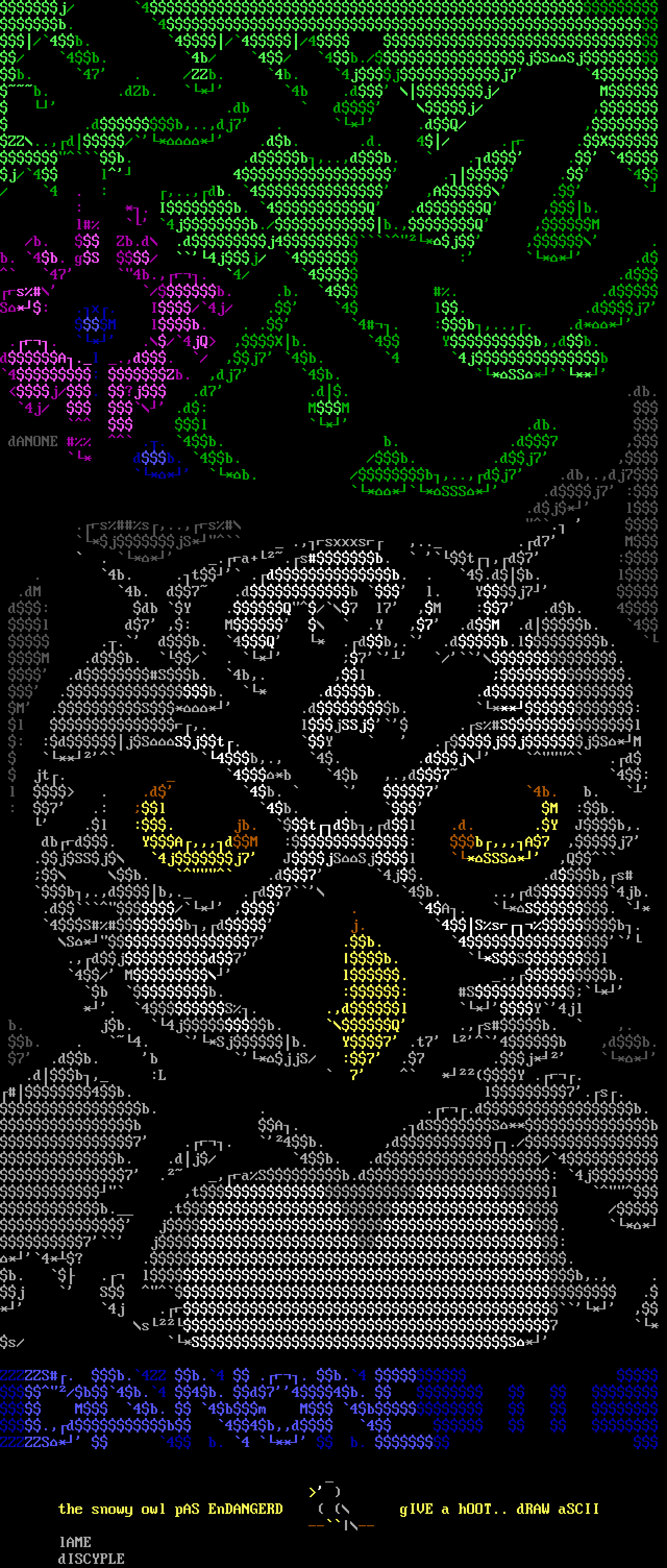 the snowy owl pAS EnDANGERD gIVE a hOOT.. dRAW aSCII