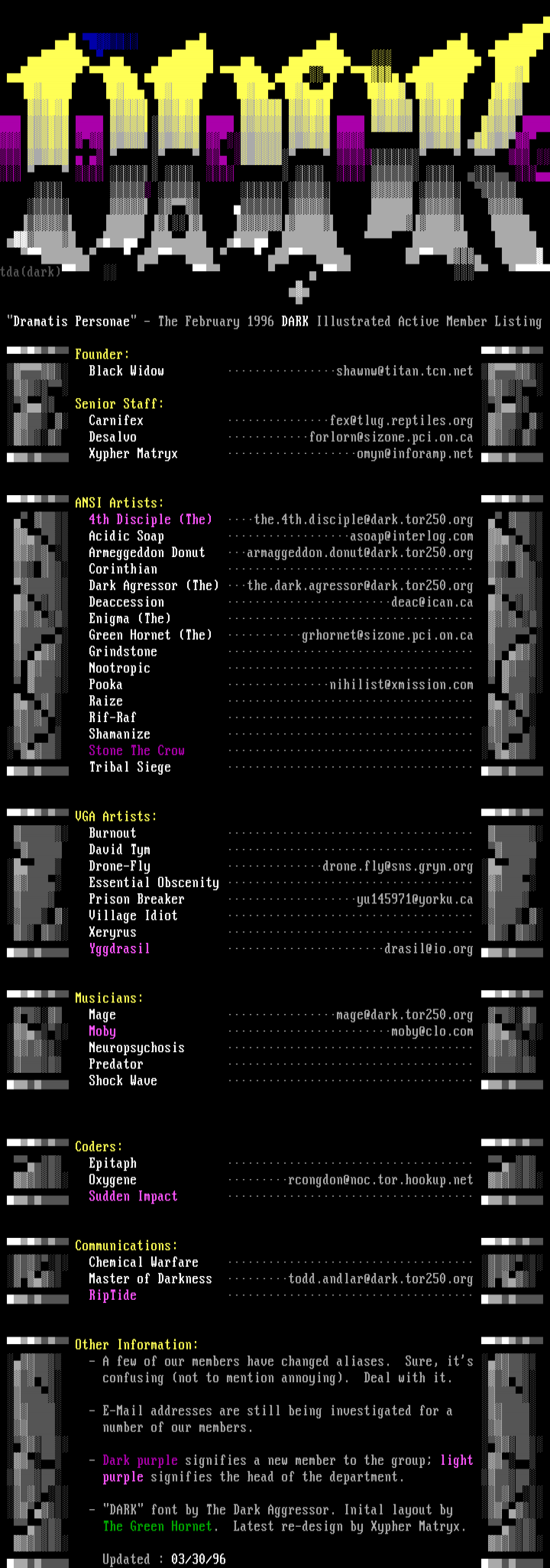 Dramatis Personae - The February 1996 DARK Illustrated Active Member Listing