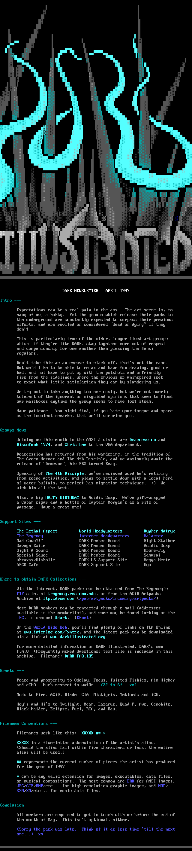 Nods to Fire, ACiD, Blade, CIA, Mistigris, Teklordz and iCE.