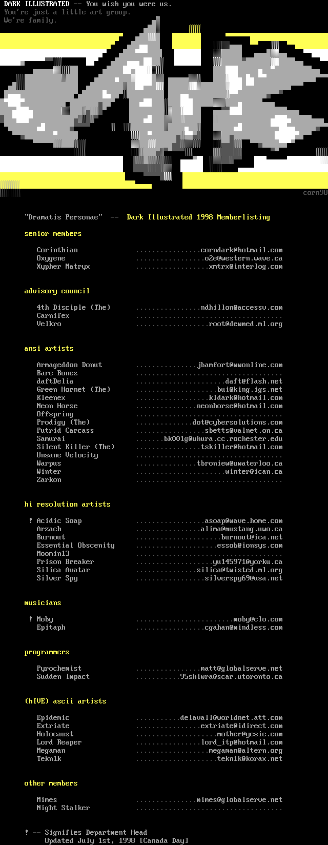 Dramatis Personae -- Dark Illustrated 1998 Memberlisting