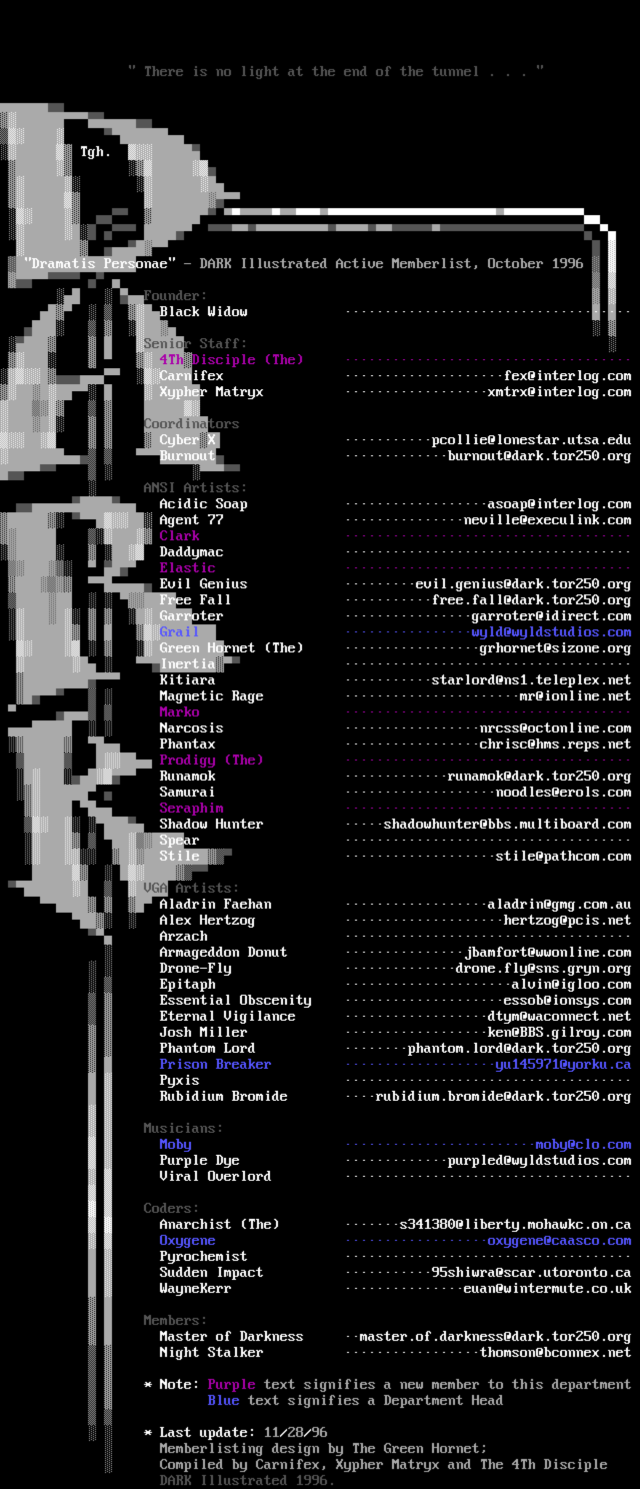 Dramatis Personae - DARK Illustrated Active Memberlist, October 1996