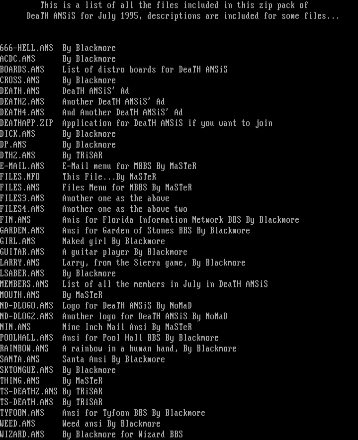 DeaTH ANSiS for July 1995, descriptions are included for some files...