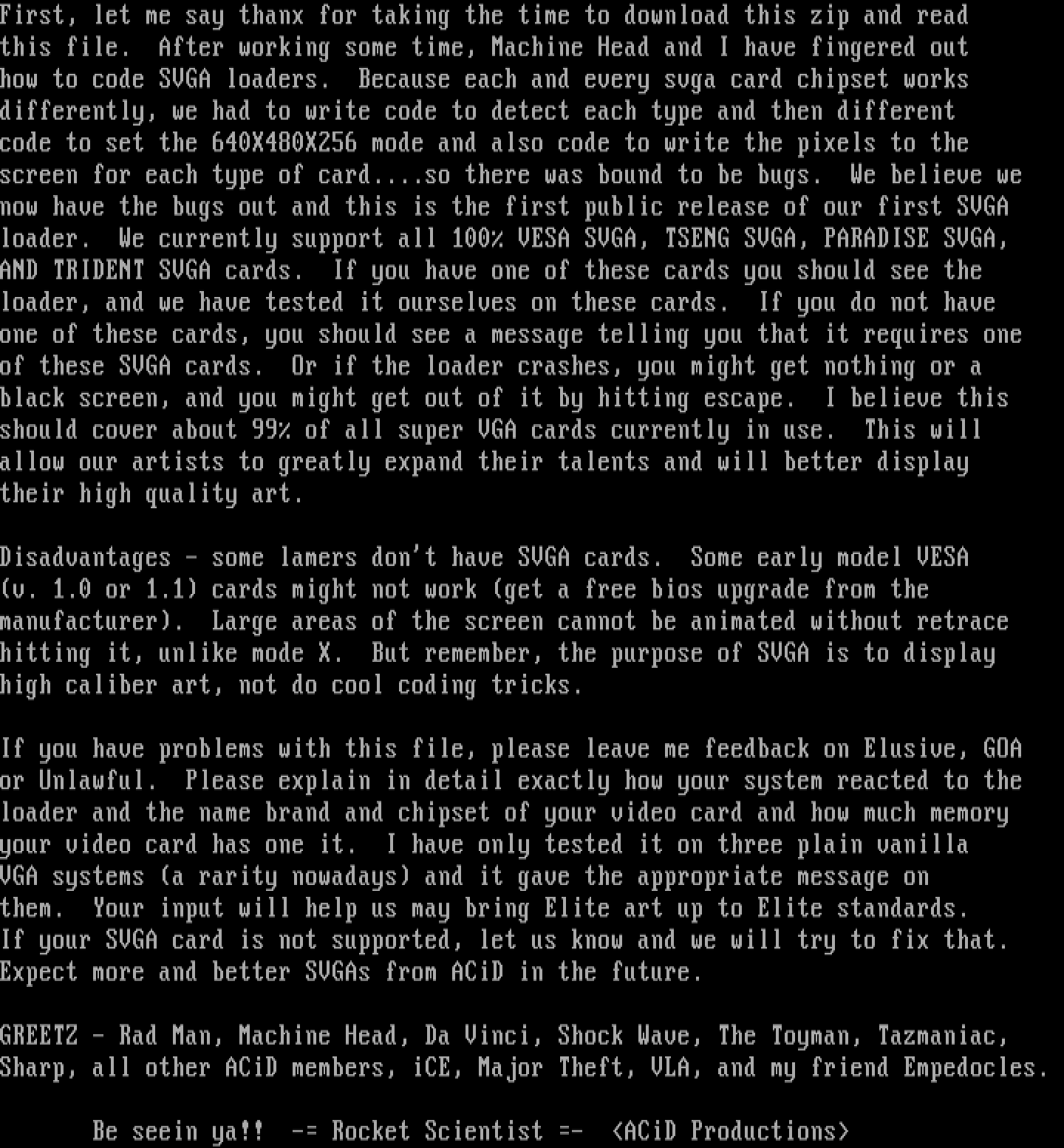 Sharp, all other ACiD members, iCE, Major Theft, VLA, and my friend Empedocles.